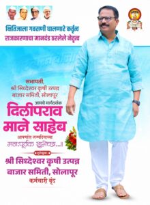 राज्यातील विक्रमी उलाढालीसाठी प्रसिद्ध असलेल्या श्रीसिद्धेश्वर सोलापूर कृषी उत्पन्न बाजार समितीचे सभापती दिलीप माने यांच्या वाढदिवसानिमित्त भरगच्च कार्यक्रमांचे आयोजन करण्यात आले होते.