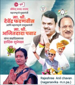 वाढदिवस जनतेच्या मनातील, महाराष्ट्राला क्रमांक एक वर पोहोचवणारे मुख्यमंत्री सन्माननीय देवेंद्रजी फडणवीस साहेब यांचा,वाढदिवस जनतेच्या विकास कामासाठी सदैव अग्रेसर असणारे, प्रशासनावर जरब असलेले उपमुख्यमंत्री सन्माननीय अजित दादा पवार साहेब यांचा. आज 22 जुलै एक अत्यंत महत्त्वाचा दिवस असून महाराष्ट्राचे लाडके मुख्यमंत्री देवेंद्रजी फडणवीस साहेब व उपमुख्यमंत्री सन्माननीय अजित दादा पवार साहेब यांचा जन्मदिवस हा योग जुळून आला असून दोघेही जनतेच्या विकासासाठी आसुरलेले आहेत.जनतेच्या कामासाठी, विकासासाठी 24 तास स्वतःला झोकून दिलेले आहे त्यामुळे जनता त्यांना विकास पुरुष म्हणून जनमानसात लोकप्रिय ठरत आहेत.