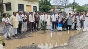 शहरातील प्रभाग क्र. २२ मधील रस्ते, ड्रेनेज व स्ट्रीटलाईट, आदी मूलभूत सोयीसुविधांच्या समस्यांवर रस्त्यावरील खड्ड्यात झाडे लावून आंदोलन