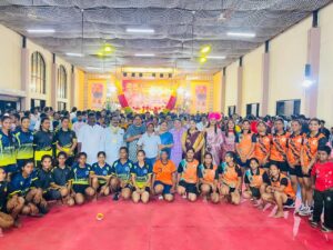 दरम्यान राष्ट्रवादी काँग्रेस पार्टीचे प्रदेश उपाध्यक्ष किसन जाधव यांच्या वाढदिवस अभिष्टचिंतन सोहळ्यानिमित्त लिमयेवाडी येथील शंकर भवन येथे या स्पर्धेचे अंतिम सामने पार पडले या अंतिम सामन्याप्रसंगी सोलापूर शहर मध्य विधानसभा मतदारसंघाचे दमदार आमदार देवेंद्र कोठे, राष्ट्रवादीचे प्रदेश उपाध्यक्ष, ज्येष्ठ राष्ट्रवादीचे नेते तथा सिडकोचे माजी अध्यक्ष प्रमोद हिंदुराव, ईच्छा भगवंताची परिवाराचे आधारस्तंभ लक्ष्मण जाधव, राष्ट्रवादी सोलापूर ग्रामीणचे अध्यक्ष उमेश पाटील,सोलापूर शहर जिल्हा राष्ट्रवादी काँग्रेस पार्टीचे अध्यक्ष संतोष पवार, माजी महापौर श्रीकांचना यन्नम, मोनिका देवेंद्र कोठे, शहर राष्ट्रवादी कार्याध्यक्ष जुबेर बागवान, शिवसेना जिल्हाध्यक्ष अमोल शिंदे, माजी महिला बालकल्याण समिती सभापती अश्विनी चव्हाण, शिवसेना शहराध्यक्ष सचिन चव्हाण,माजी उपमहापौर पद्माकर काळे,माजी स्थायी समिती सभापती देवेंद्र भंडारे,माजी नगरसेवक तौफिक शेख,गुरुशांत दुत्तरगावकर, गामा पैलवान,सोलापूर महानगरपालिकेचे नगर अभियंता सारिका अकुलवार, हाजी मलंग शेठ,अप्पा रोडगे,माजी नगरसेवक पैगंबर शेख, आनंद मुस्तारे, एडवोकेट सुशील सरवदे, माजी नगरसेविका संगीता जाधव, इरफान शेख, करेप्पा जंगम,नारायण माशाळकर, किरण माशाळकर, सुहास कदम, वैभव गंगणे, अमीर शेख आदी मान्यवरांच्या उपस्थितीत अजिंक्य पद कबड्डी स्पर्धेच्या अंतिम सामन्याचे खेळाडूंचे ओळख होऊन नाणेफेक करून सामन्यास सुरुवात करण्यात आले.