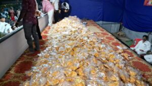 ईच्छा भगवंताची नवरात्र महोत्सव मंडळाच्या वतीनं कोजागिरी पौर्णिमा निमित्त महाराष्ट्राची कुलस्वामिनी आई तुळजाभवानीच्या दर्शनासाठी कपाळावर कुंकवाचा भंडारा, मुखी आधी मायेचा गजर करीत अनवाणी पायी चालत जाणाऱ्या भक्तांसाठी महाप्रसादाच वाटप करण्यात आले यंदाचे हे २५ वे वर्ष असून मंडळाचे संस्थापक आधारस्तंभ लक्ष्मण मामा जाधव यांच्या नेतृत्वाखाली सोलापूर तुळजापूर मार्गावरील मशरूम गणपती परिसरात हजारो भाविकांना महाप्रसाद वाटपाचे आयोजन करण्यात आले होते.