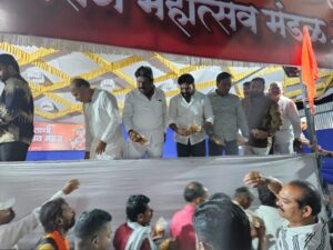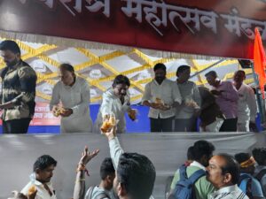या महाप्रसाद सोहळ्याचे शुभारंभ प्रसंगी मंडळाचे संस्थापक आधारस्तंभ लक्ष्मण मामा जाधव, मार्गदर्शक तथा राष्ट्रवादी काँग्रेस पार्टी प्रदेश उपाध्यक्ष किसन जाधव, कार्यसम्राट नगरसेवक नागेश गायकवाड, मंडळाचे कार्याध्यक्ष अनिल दादा जाधव, शिवाजी गायकवाड,चंदू ब्रदर जाधव, अंबादास जाधव शहा नगर, स्वामी काका, श्रीमंत सुरवसे मामा, अंबादास गायकवाड, राष्ट्रवादी काँग्रेस पार्टीचे ज्येष्ठ नेते हेमंत चौधरी, माजी परिवहन समिती सभापती आनंद मुस्तारे, सिकंदर शेख,राजू ब्रदर जाधव, विनोद भाऊजी गायकवाड नितीन भाऊजी एडवोकेट किरण गायकवाड,राष्ट्रवादी प्रदेश युवक सरचिटणीस चेतन नागेश गायकवाड, प्रेम नागेश गायकवाड, तेजस गायकवाड,अजिंक्य जाधव,करण जाधव,नागेश ढेंगळे, सागर कांबळे,अमोल लकडे, शिवानंद बंडगर,मोहन अध्यक्ष गायकवाड,बाबा सावंत,अंबादास कोळी,पंडित शेटे, श्री गिरी,तेजस गायकवाड,अल्ताफ नदाफ,दर्शन दुबे, सुनील कांबळे,फिरोज पठाण, निखिल गंभीरे,केतन निकम,वीरेश सुतार,अर्जुन साळवे,महेश म्हेत्रे, प्रथमेश पवार, किरण शिंदे,अमोल जगताप,जयेश जाधव,सचिन (अक्षय) जाधव,उमेश जाधव,संतोष गायकवाड हुडको, शरद शिंदे, सचिन गुत्तेदार, हरीश तेलगू, संतोष ऋतिक गायकवाड,निलेश कांबळे, माऊली जरग,श्रीशैल चौगुले,पवन बेरे,ऋषी येवले,सागर शिवपूरकर संजय भडंगे, सोनू तळभंडारे यांच्यासह विविध क्षेत्रातील मान्यवरांच्या उपस्थितीत श्री तुळजाभवानी मातेच्या प्रतिमेचे विधिवत पूजन करून महाप्रसादाचे नैवेद्य चढवून या प्रसाद वाटप कार्यक्रमाचे शुभारंभ करण्यात आले.कोजागिरी पौर्णिमा निमित्त लाखो भाविक दर्शनासाठी तुळजापूरला भवानी मातेचे दर्शन घेण्यासाठी अनवाणी पायी चालत जात असतात कर्नाटक, आंध्र, तेलंगणा अशा अन्य विविध राज्यातून लाखो भाविकांचा त्यामध्ये समावेश असतो. गेल्या पंचवीस वर्षापासून आजतागायत ईच्छा भगवंताची नवरात्रोत्सव मंडळाच्या महाप्रसाद वाटपचे अखंड सेवा आज तागायत मंडळाचे आधारस्तंभ लक्ष्मण मामा जाधव यांच्या मार्गदर्शनाने सुरू आहे तसेच सोलापूर जिल्ह्यात अतिवृष्टीमुळे शेतकऱ्यांचे अतोनात नुकसान झाले आहे या संकटातून शेतकऱ्यांना सावरण्यासाठी आई जगदंबा त्यांना बळ द्यावे असे साकडे देखील यावेळी मंडळाचे मार्गदर्शक व राष्ट्रवादी काँग्रेस पार्टीचे प्रदेश उपाध्यक्ष किसन जाधव यांनी आई तुळजाभवानी चरणी घातलं.आद्यी मायेचा गजर करीत लाखो भाविका तुळजापूरकडे मोठ्या भावाने अमाप उत्साही वातावरणात रवाना झाले.