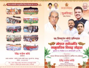 आमदार देवेंद्र कोठे यांच्या संकल्पनेतून साकार सर्वधर्मीय सामुदायिक विवाह सोहळा…पद्मशाली समाजातील गरजूंची सामुदायिक विवाह सोहळ्यात होणार शुभमंगल आपली उपस्थिती प्रार्थनीय…