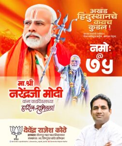 ज्यांनी कलम 370 हटवले, सर्जिकल स्ट्राईक आणि ऑपरेशन सिंदूरच्या माध्यमातून ज्यांच्या नेतृत्वाखाली नवा सामर्थ्यशाली भारत जगाने अनुभवला, डिजिटल इंडिया, मेक इन इंडिया, स्टार्ट अप इंडिया यासारख्या अभिनव उपक्रमांमधून ज्यांनी अर्थव्यवस्थेला नवसंजीवनी दिली, भारताला गतवैभव मिळवून देणाऱ्या या भारत मातेच्या अस्सल राष्ट्रप्रेमी सेवकाला म्हणजे पंतप्रधान मा. नरेंद्रजी मोदी साहेबांना 75 व्या जन्मदिनानिमित्त कोटी-कोटी शुभेच्छा…!