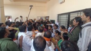 सत्ताधारी पदाधिकारी आत जाऊ नये यासाठी विरोधकांनी कार्यालयाच्या दरवाज्यात केले ठिय्या आंदोलन