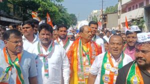 त्यांच्यासोबत राष्ट्रवादी काँग्रेसचे शहराध्यक्ष सुधीर खरटमल, काँग्रेसच्या शहराध्यक्ष चेतन नरोटे, भारत जाधव, सुनिता रोटे, अक्षय वाकसे, सरफराज शेख, यांच्यासह हजारों समर्थक कार्यकर्ते सहभागी झाले होते