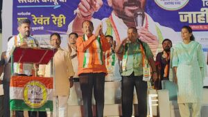 दरम्यान विधानसभा निवडणुकीचा प्रचार अंतिम टप्यात आला असल्याने प्रचारात अधिकच चढा ओढ लागलेली दिसत आहे. महाविकास आघाडीचे राष्ट्रवादी काँग्रेस शरद पवार पक्षाचे उमेदवार महेश कोठे तुतारी या चिन्हावर निवडणूक लढवत आहेत. याच पार्श्वभूमीवर विडी घरकुल परिसरात महेश कोठे यांच्या प्रचारार्थ तेलंगनाचे मुख्यमंत्री रेवंत रेड्डी यांच्या सभेचे आयोजन करण्यात आले होते. यावेळी व्यासपीठावर खासदार प्रणिती शिंदे, उमेदवार महेश कोठे, शहराध्यक्ष सुधीर खटमल आजींची उपस्थिती होती.
