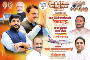 सोलापूरच्या तरुणांच्या स्वप्नांना पंख देण्यासाठी सोलापूर-मुंबई विमानसेवा सुरू करणारे महाराष्ट्राचे लाडके मुख्यमंत्री, माननीय नामदार देवेंद्रजी फडणवीस साहेब म्हणजेच आपल्या लाडक्या देवा भाऊंचे आणि केंद्रीय सहकार आणि नागरी विमान वाहतूक राज्यमंत्री मुरलीधर अण्णा मोहोळ यांचे श्री सिद्धरामेश्वरांच्या पुण्यनगरीत मनःपूर्वक हार्दिक स्वागत !