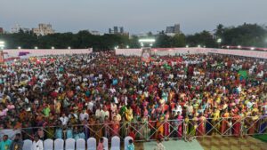 गोरज मुहूर्तावरची लगबग….मंगलवाद्यांचे सूर…आणि अनुपम्य असा सोहळा ‘याची देही याची डोळा’ पाहण्यासाठी जमलेले हजारो वऱ्हाडी अशा वातावरणात बुधवारी स्व. विष्णूपंत कोठे प्रतिष्ठानतर्फे २६ जोडप्यांचा मोफत सर्वधर्मीय सामुदायिक विवाह सोहळा अत्यंत आनंदी वातावरणात झाला. लिंगराज वल्याळ मैदानावर झालेल्या या सामुदायिक विवाह सोहळ्यास सोलापूर जिल्ह्याचे पालकमंत्री जयकुमार गोरे,संयोजक आमदार देवेंद्र कोठे, सोलापूर महानगरपालिकेचे आयुक्त डॉ. सचिन ओंबासे, पोलीस आयुक्त एम. राजकुमार, पोलिस उपायुक्त विजय कबाडे यांची प्रमुख उपस्थिती होती.